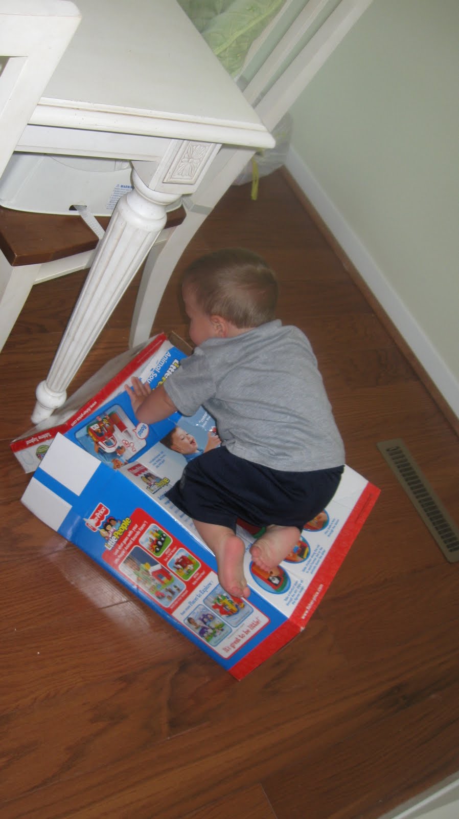 But he was determined to climb to the top and stand on the box-yes the side with the flimsy plastic!
